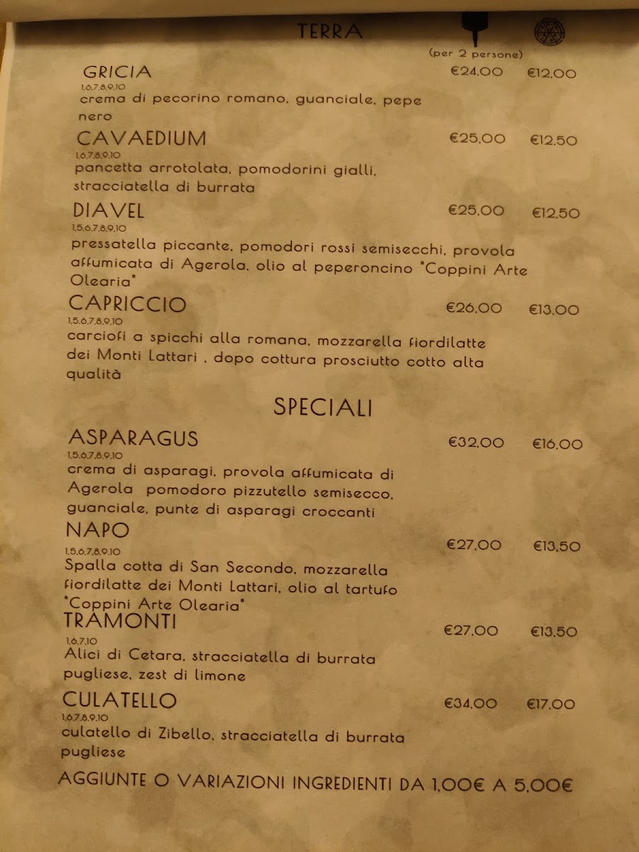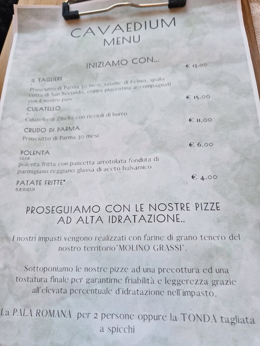 The vibrant heart of Parma is home to the delightful Cavaedium Pizzeria, where every bite is an experience. As you flip through the Cavaedium Pizzeria Menu, you'll discover an inviting array of pizzas crafted with the finest ingredients, bringing together traditional Italian flavors and a touch of local flair. From rich, wood-fired classics to contemporary creations, each pizza is baked to perfection, offering a crispy crust, savory toppings, and melted cheese that will make your taste buds dance. Whether you're craving something simple or daring, the menu offers something for everyone, including vegetarian options that don't compromise on flavor. Accompany your pizza with one of their signature sides, and perhaps even a glass of local wine, to enhance the experience. You’ll find that every dish has been carefully curated to celebrate the joy of good food, and Cavaedium Pizzeria welcomes you to savor it all.